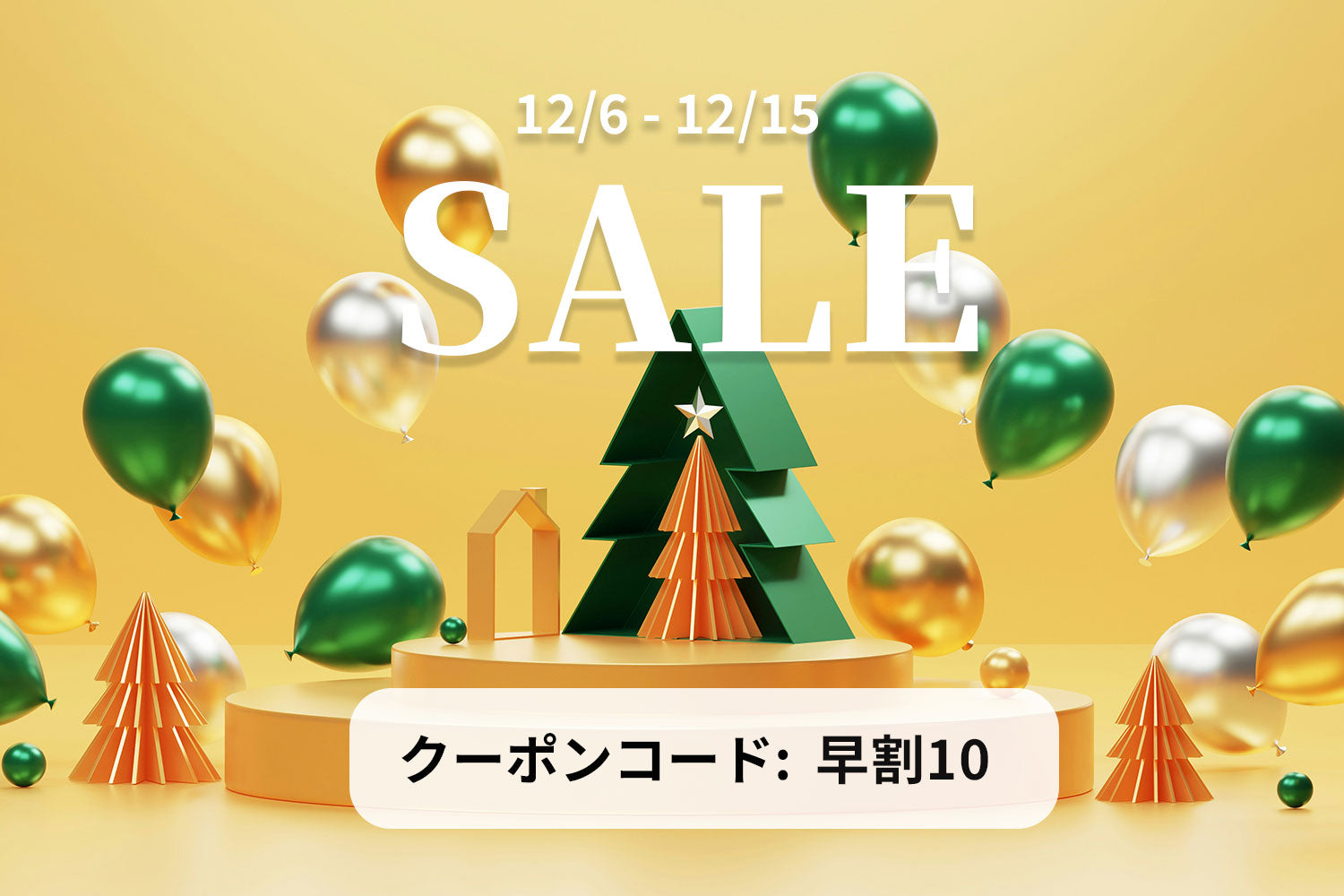 ご愛顧に感謝し、12月6日から12月15日まで10%オフクーポンをご用意いたしました。ご購入時に、クーポンコード「早割10」を入力すると10%OFFになります。